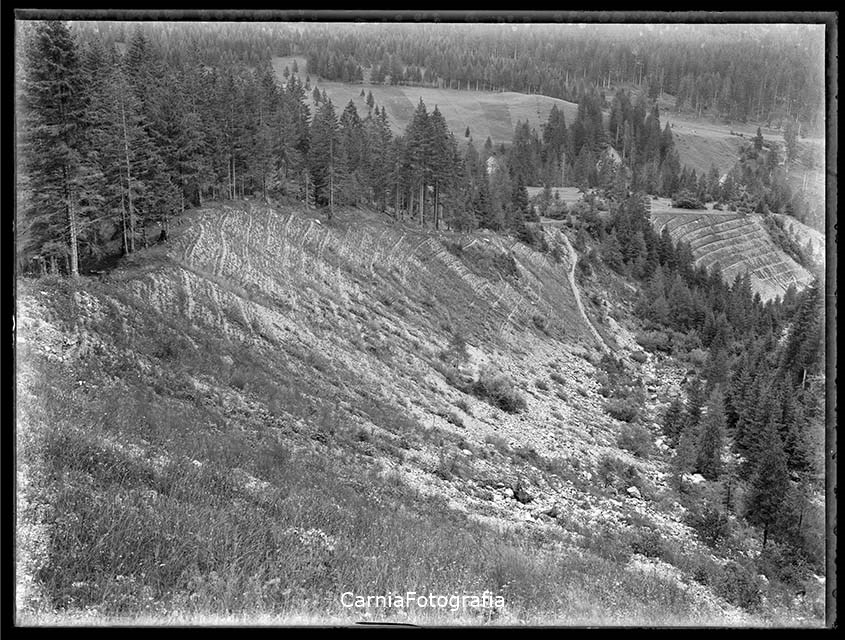 Rio Chianaletta (affluente del rio Stalis): documentazione di un versante montano dopo gli interventi di sistemazione idraulico-forestale. Sul versante sono visibili graticciate, piantumazioni, un sentiero attrezzato con staccionata in legno e sentieri di servizio.