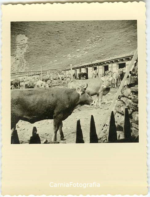L'alpeggio in una malga del comprensorio di Sauris. La casera ospita diverse mucche.