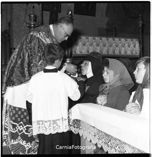 L'Eucarestia data a Suor Consuelo da parte di monsignor Renato Lucis all'interno della chiesa
