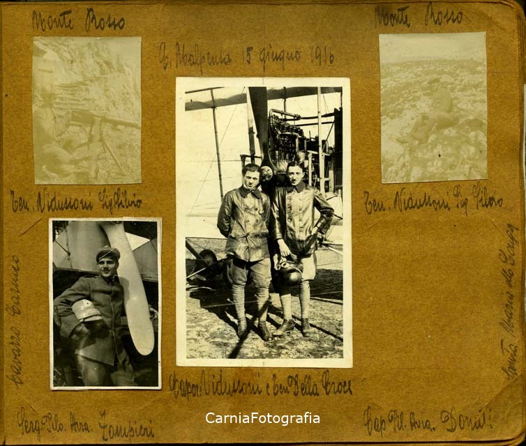 Durante la Prima Guerra Mondiale Attilio Vidussoni presta servizio come caporale e aviatore nel Regio Esercito. L'album contiene diverse fotografie realizzate in un periodo compreso tra il 1915 e il 1917: si tratta per la maggior parte di ritratti singoli o di gruppo realizzati in studio oppure in esterno (spesso con gli aerei militari); l'album presenta alcune vedute aeree ed urbane e numerose immagini con velivoli precipati al suolo.