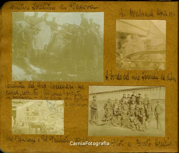 Durante la Prima Guerra Mondiale Attilio Vidussoni presta servizio come caporale e aviatore nel Regio Esercito. L'album contiene diverse fotografie realizzate in un periodo compreso tra il 1915 e il 1917: si tratta per la maggior parte di ritratti singoli o di gruppo realizzati in studio oppure in esterno (spesso con gli aerei militari); l'album presenta alcune vedute aeree ed urbane e numerose immagini con velivoli precipati al suolo.