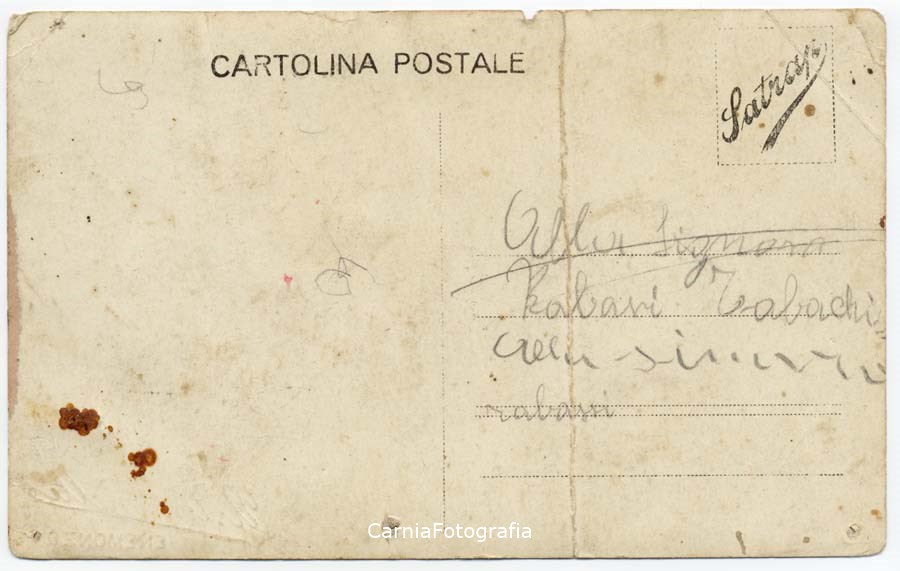 Ritratto in studio di un gruppo di suonatori con gli strumenti musicali. Tra di essi, al centro, Pietro Rabassi tiene il violino; le due signore alle estremità dell'immagine reggono dei vassoi con bicchieri e caraffe.