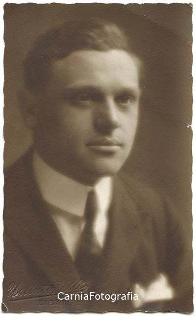 Ritratto in studio a mezzo busto di Pietro Pascoli. Pietro Pascoli è il padre di Maria Caterina Pascoli, proprietaria della fotografia.