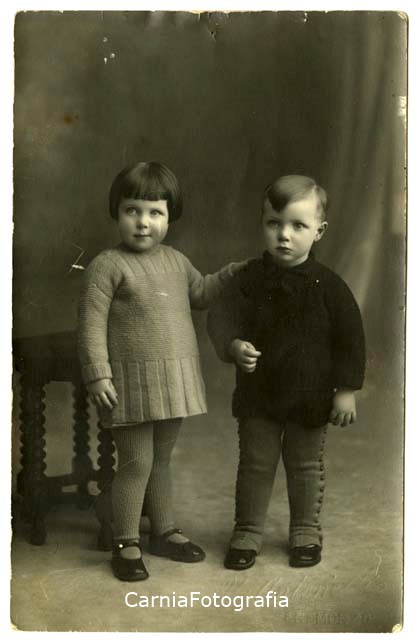 Ritratto in studio dei fratelli Giuseppina e Biagio Valle; questi sono fratelli di Maria Pia Valle (1936), proprietaria della fotografia.